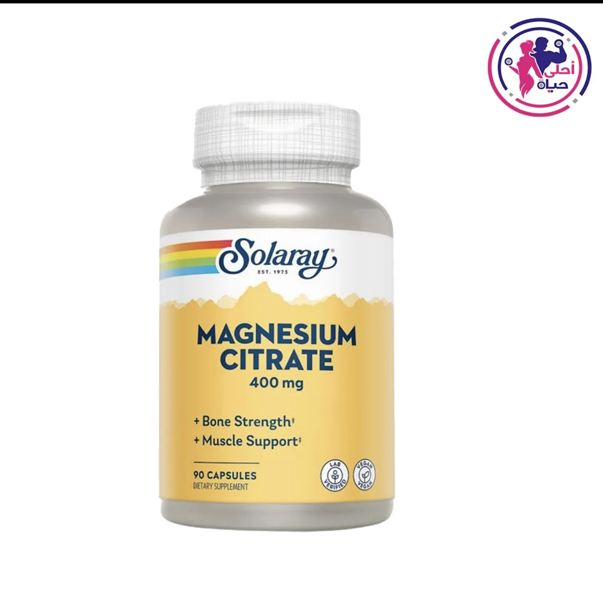 Solaray Magnesium Citrate 400mg – Bone Strength, Muscle Recovery, and Digestion Support – Herbal Base – Vegan, Lab Verified, 30 Servings, 90 VegCaps USA